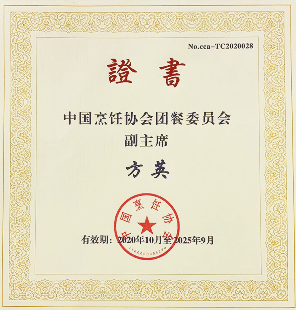 授予方英女士-中國(guó)烹飪協(xié)會(huì)團(tuán)餐委員會(huì)副主席
