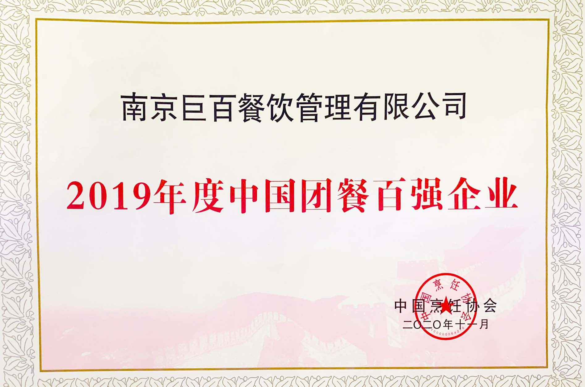 2019年度中國(guó)團(tuán)餐百?gòu)?qiáng)企業(yè)